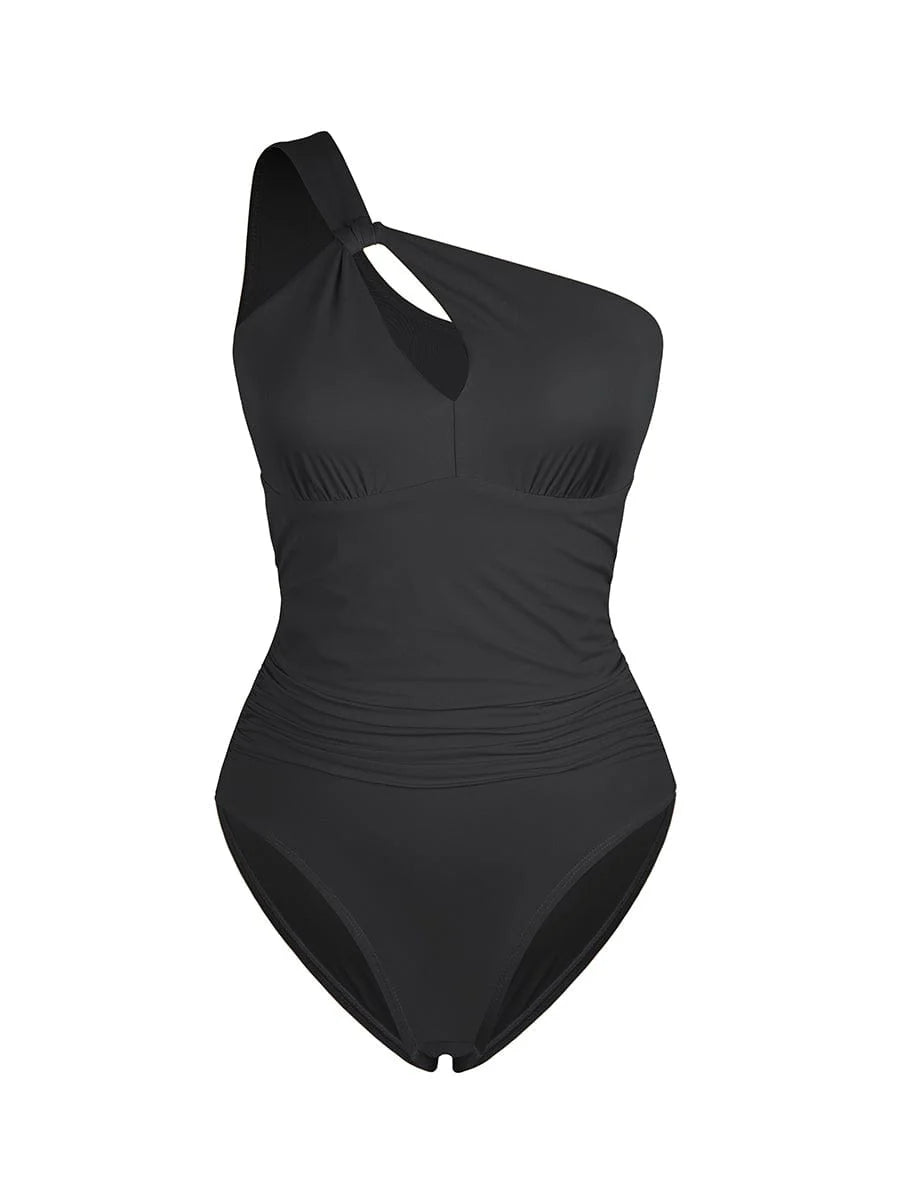 Traje de baño de una pieza con un hombro al descubierto y fruncido con soporte en el pecho