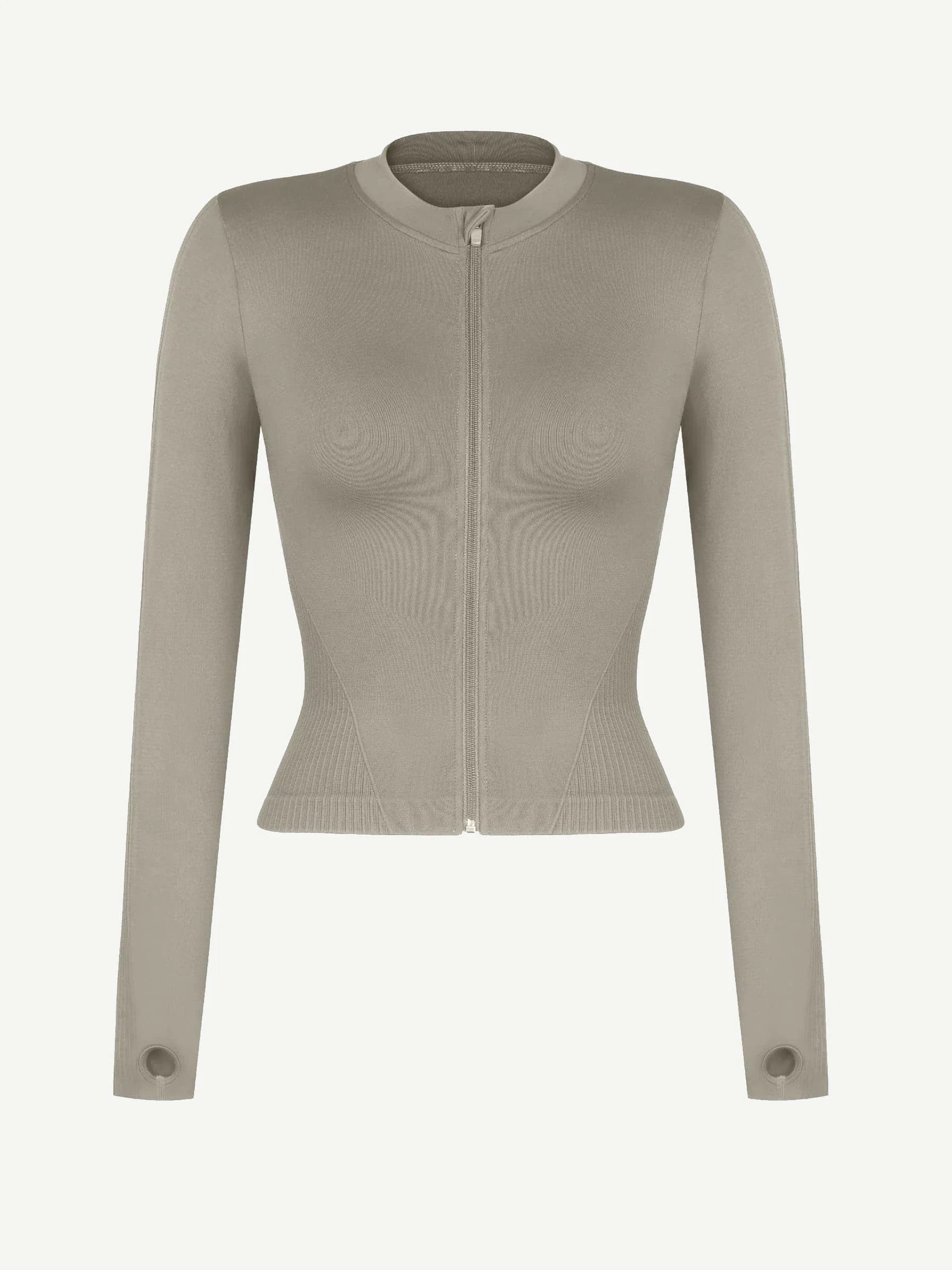 Top de running con cremallera completa sin costuras y orificios para los pulgares